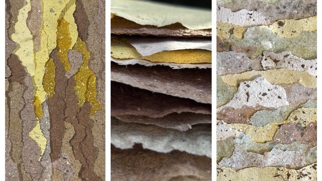 Ergänzend experimentieren wir mit natürlichen Färbungen aus Gewürzen und Kräutern. Im weiteren Verlauf entstehen aus dem handgeschöpften Pilzpapier individuelle Arbeiten, die mit textilen Materialien kombiniert und gestalterisch weiterentwickelt werden können.
